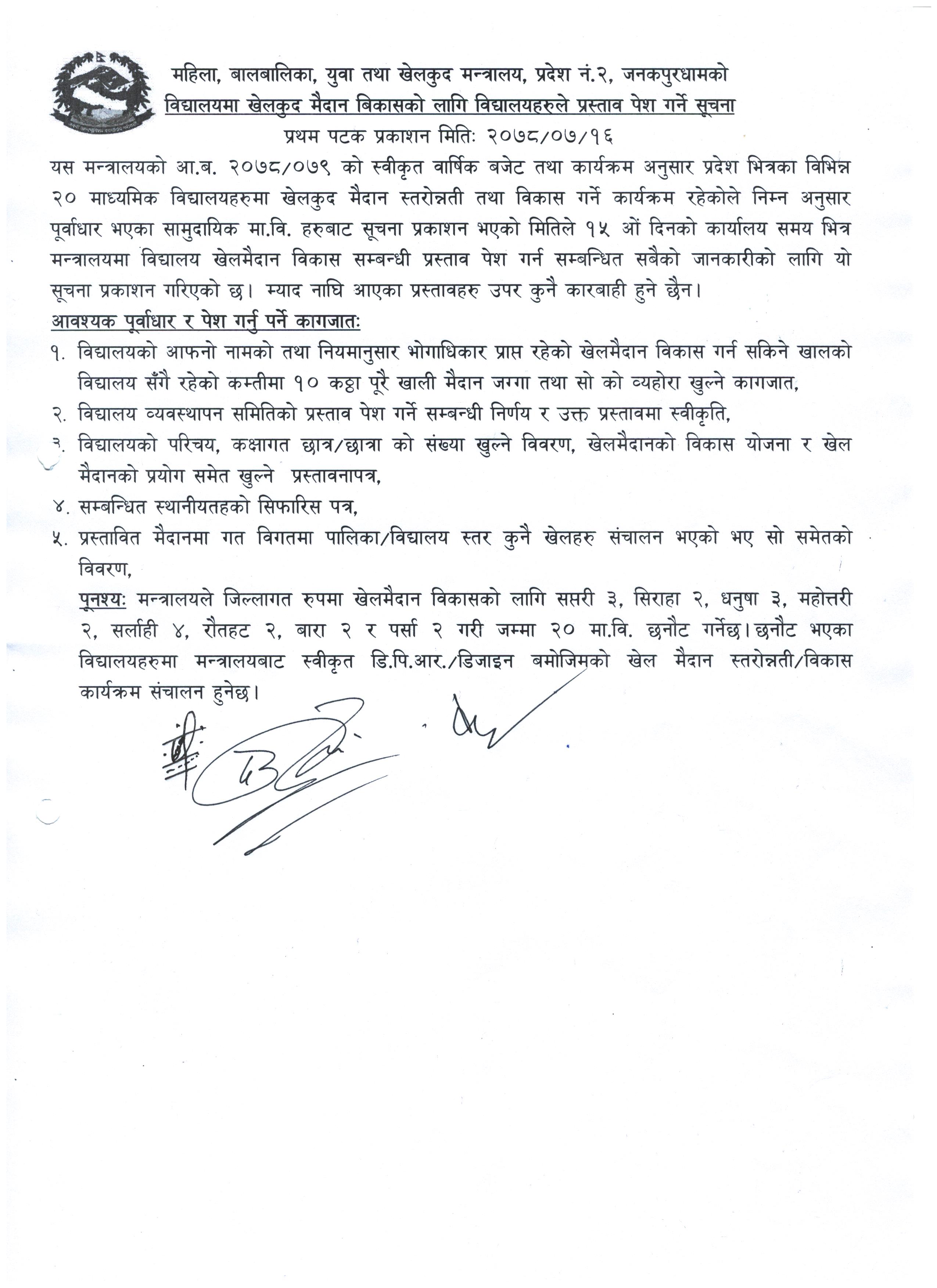 योजना सम्पन्न गर्ने सम्बन्धी सूचना