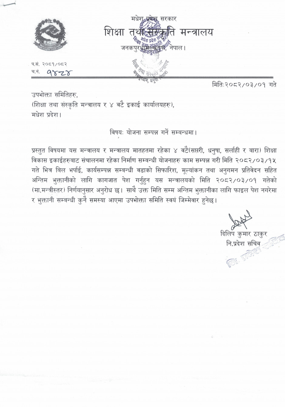 योजना सम्पन्न गर्ने सम्बन्धी सूचना