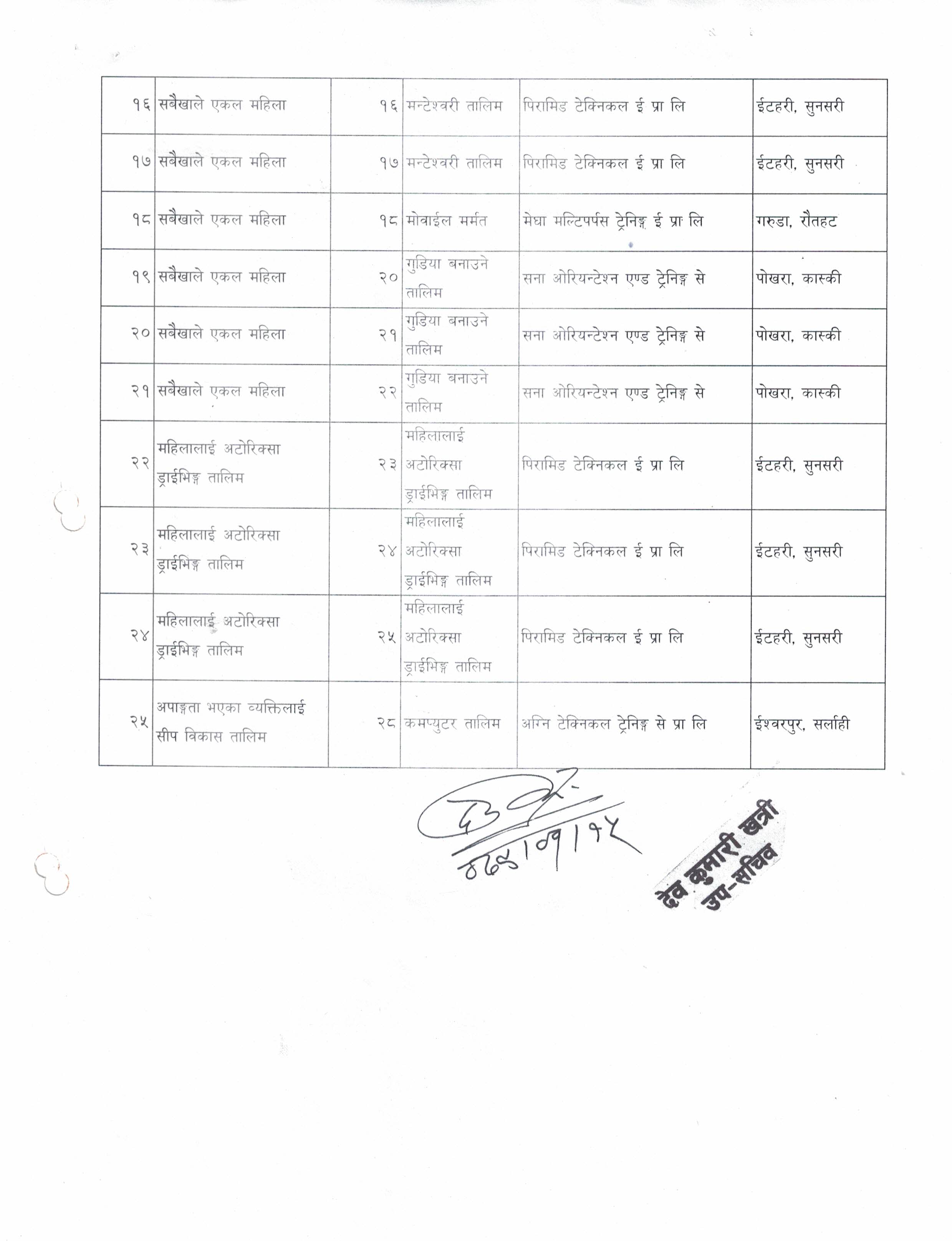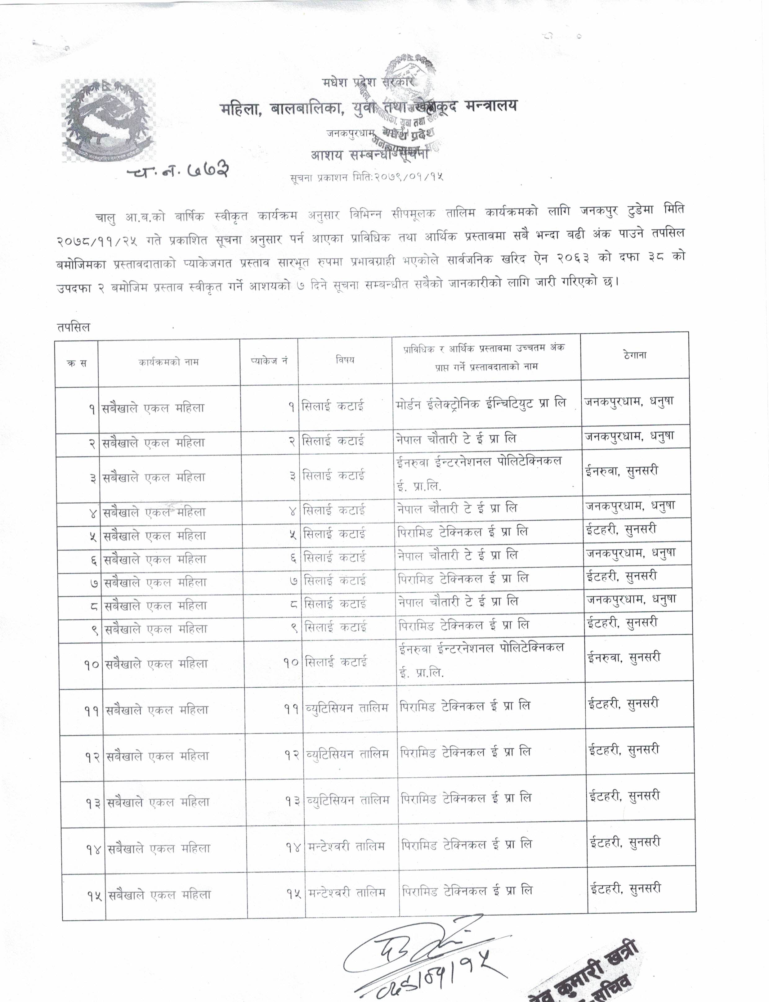 सिप विकास तालिम सञ्चालनको प्रस्ताव स्वीकृतीको लागि आशयको सूचना